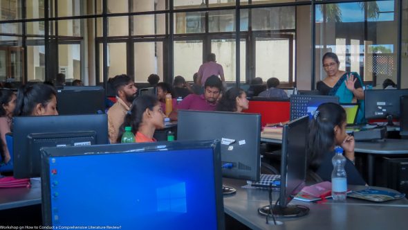 The first workshop of this workshop series was conducted by Mrs. Shirani Ranasinghe, Deputy Librarian of the University of Sri Jayewardenepura on “How to conduct a Comprehensive Literature Review?” The workshop was held on 23rd August at the Computer Lab of the Main library, USJ.