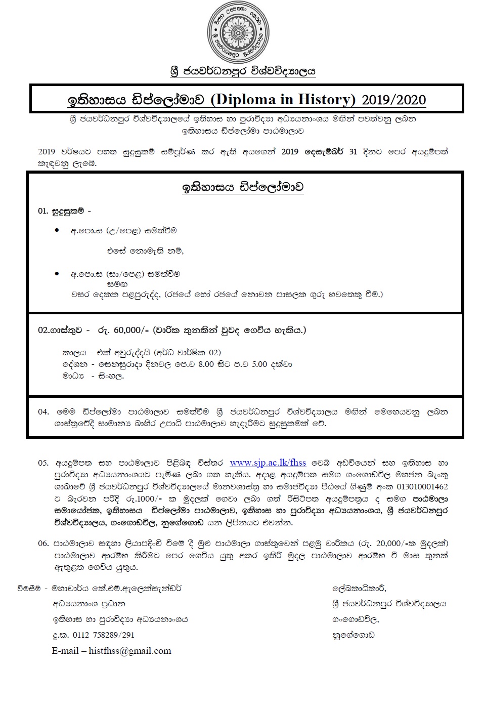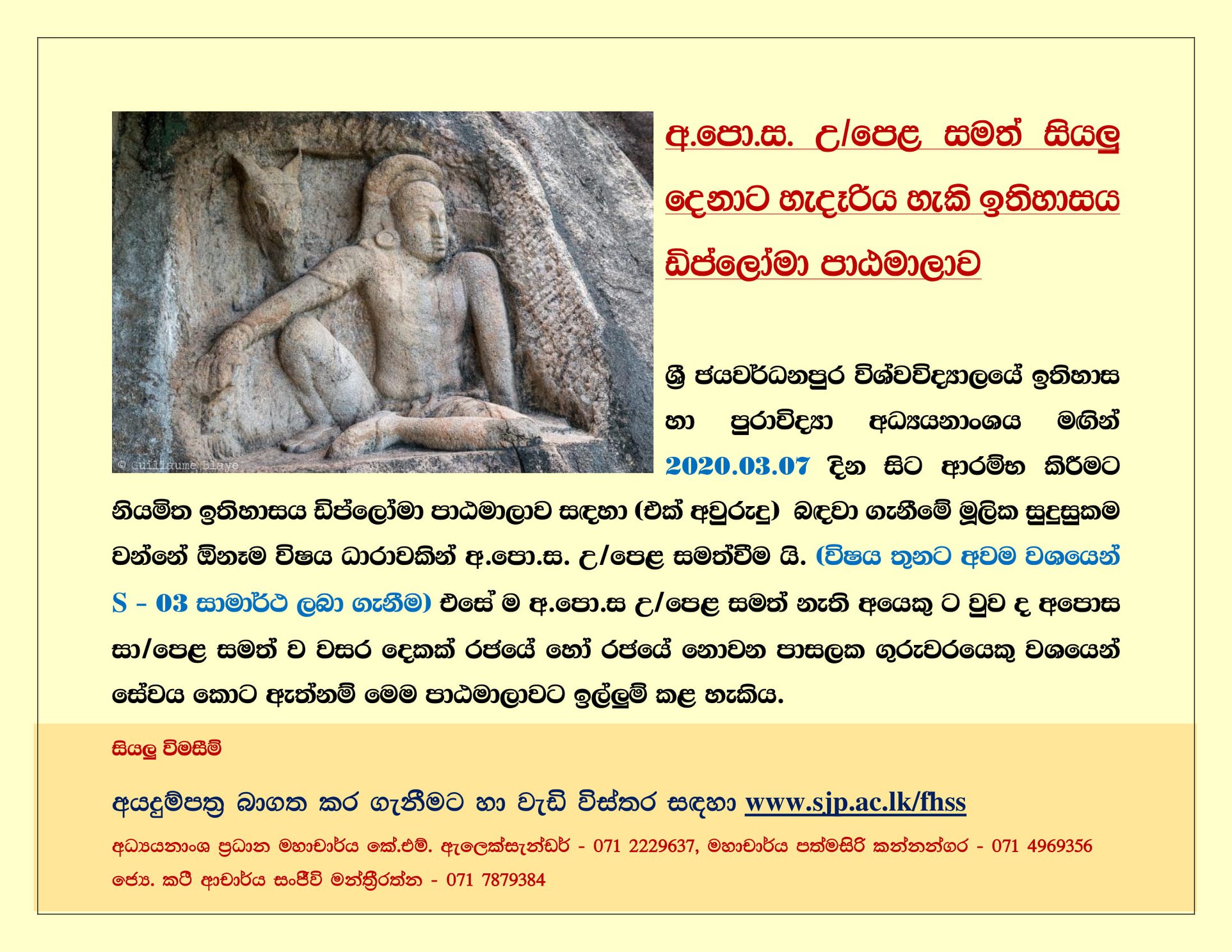 Applications are invited for the Diploma in History conducted by the Department of History and Archaeology of the Faculty of Humanities and Social Sciences.