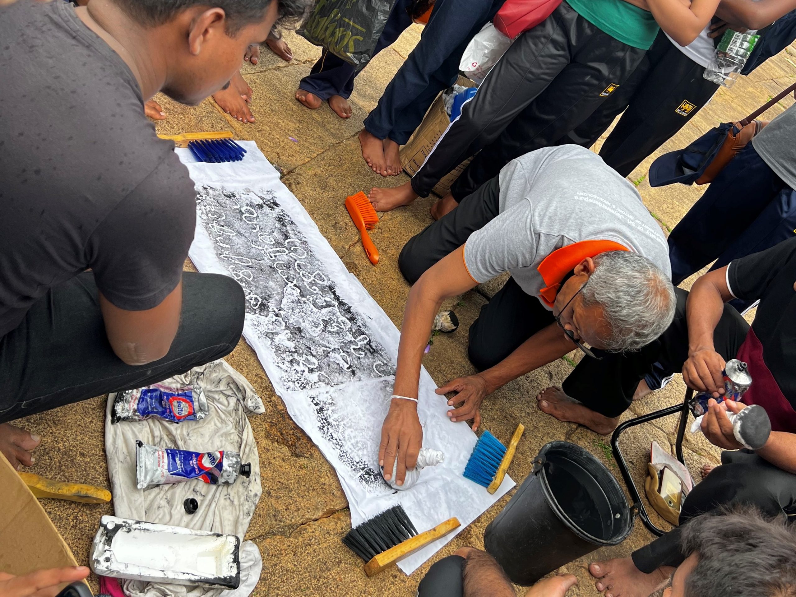 Under the guidance of the Head of the Department and a prominent Epigraphist in Sri Lanka, Prof. Karunasena Hettiarachchi, and with the participation of more academic staff members including Sen.Lect. (Dr.) Oshan Wedage, Lect. (Prob.) Damith Ranagala, the students were offered hands-on training to take an inscription stampage at the Jetavana stupa stone terrace (Salapatahala Maluva).