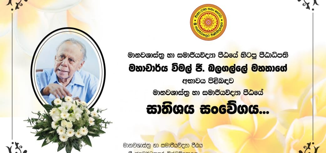 The Faculty of Humanities and Social Sciences of the University of Sri Jayewardenepura expresses its deepest sympathies on the demise of Emeritus Professor Wimal G. Balagalle, former Dean of the Faculty of Humanities and Social Sciences. He was a well-known linguist versatile in Sinhala, Pali,...Read More
