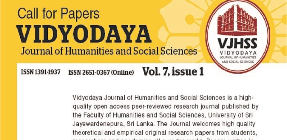 Vidyodaya Journal of Humanities and Social Sciences is inviting papers for the Volume 07, Issue 01 which is scheduled to be published on 1st January 2022. Submission deadline is 1st August 2021. VJHSS Web Site: http://journals.sjp.ac.lk/index.php/vjhss Author Guidelines: http://journals.sjp.ac.lk/index.php/vjhss/about/submissions#authorGuidelinesRead More