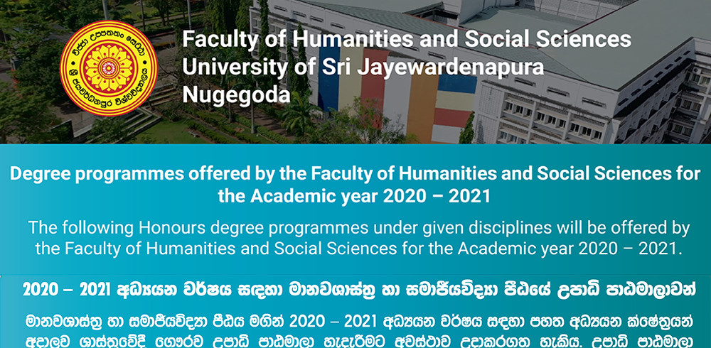 The Faculty of Humanities and Social Sciences of the University of Sri Jayewardenepura extends its wishes to the students who have passed the Advanced Level examination held in 2020. For those who wish to study in the Faculty of Humanities and Social Science, the following...Read More