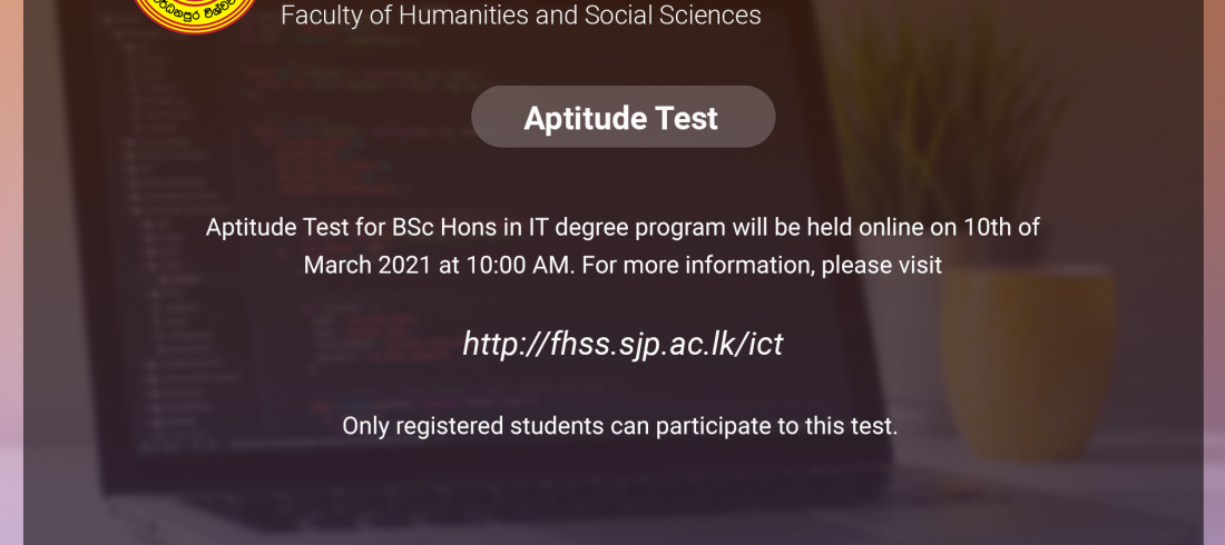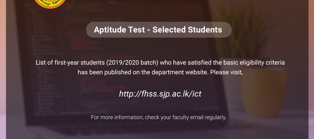 List of first-year students (2019/2020 batch) who have satisfied the basic eligibility criteria has been published on the department website. Please visit, http://archive.fhss.sjp.ac.lk/ict. For further information, check your faculty email regularly.Read More