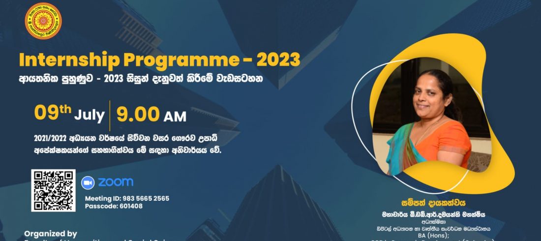 Institutional Awareness and Entrepreneurial Development Workshop Series – Lecture No 01 Topic-Industrial awareness and career guidance Resource Person Mr. M.B.D. Ayendra Director, Future Lanka Research and Development Foundation Join Zoom Meeting: https://zoom.us/j/99363298219?pwd=SHNkNXVzTEExRTl1WVIvSXo4WlRXUT09 Meeting ID: 993 6329 8219 Passcode: 175565 Read More