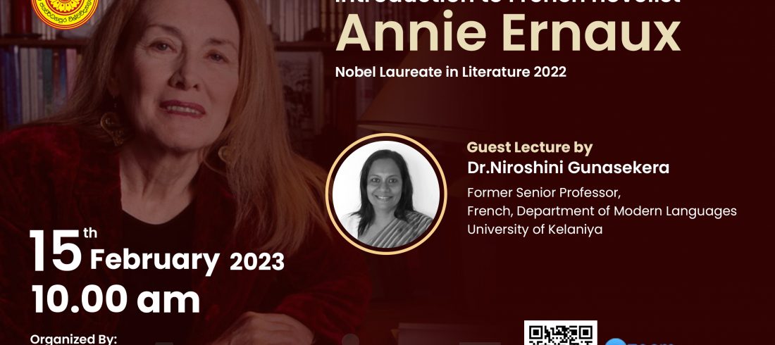 On February 15th, 2023, the Department of Languages, Cultural Studies, and Performing Arts organized a virtual guest lecture on the topic `Introduction to French novelist Annie Ernaux, Nobel Laureate in Literature 2022.` The lecture was delivered by Dr. Niroshini Gunasekera, former Senior Professor in French...Read More