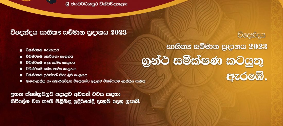 Interviews for Diploma/ Certificate in English courses are rescheduled to be held on 1st April 2023 from 9.00 a.m. to 3.00 p.m. in the Faculty Board Room of the Faculty of Humanities and Social Sciences of the University (Sumangala Mansion). Further details – http://archive.fhss.sjp.ac.lk/delt/2023/02/20/diploma-and-certificate-in-english/ Kindly...Read More