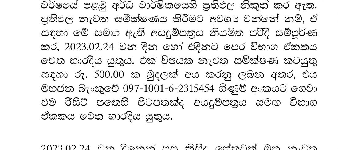 ප්රතිඵල නැවත සමීක්ෂණය සඳහා වන අයදුම්පත් කැඳවීම.