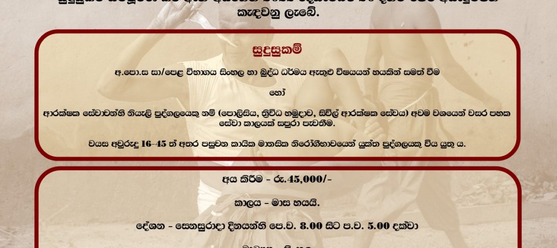Applications are invited for the Certificate Course in Angampora offered by the Department of Anthropology of the Faculty of Humanities and Social Sciences. Application Closing Date: 20th December 2022