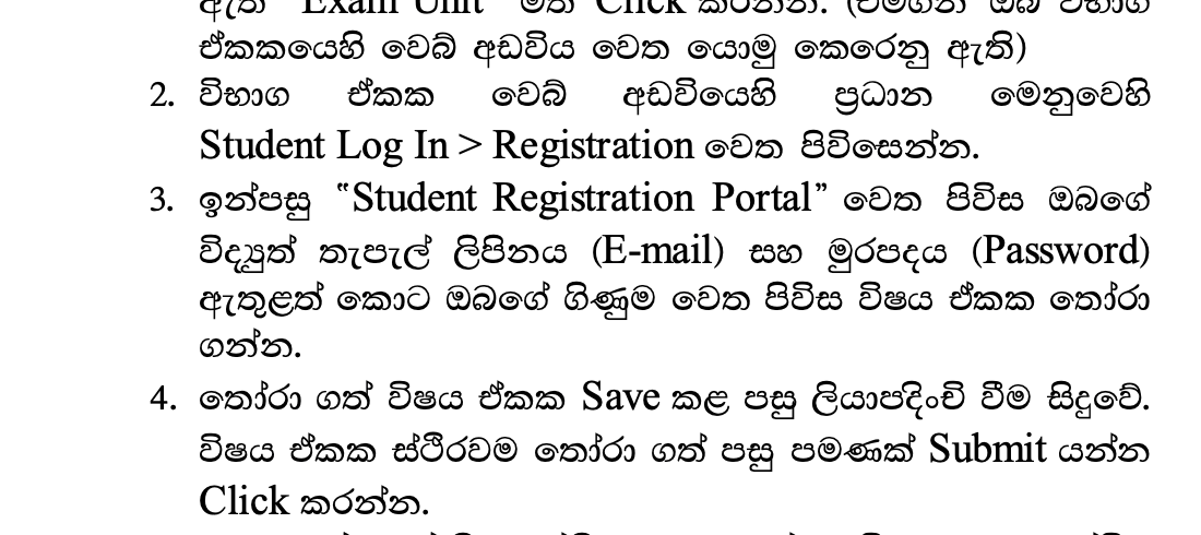 දැන්වීමයි 2020/2021 අධ්යයන වර්ෂයේ දෙවන අර්ධ වාර්ෂිකයේ විෂය ඒකක සඳහා ලියාපදිංචි වීම