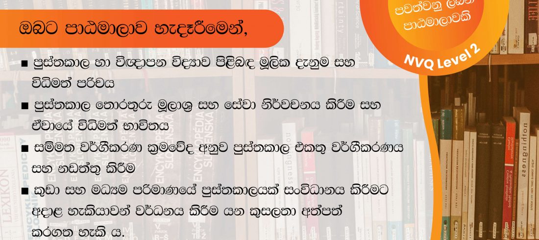පුස්තකාල හා විඥාපන විද්යා සහතික පත්ර පාඨමාලාව සඳහා අයදුම්පත් කැඳවේ.