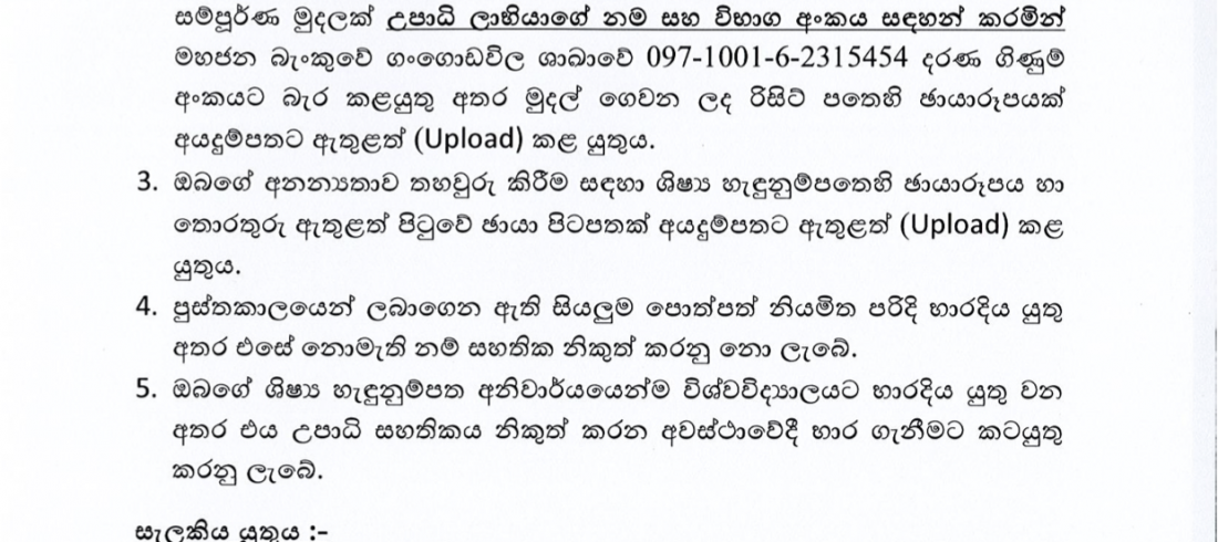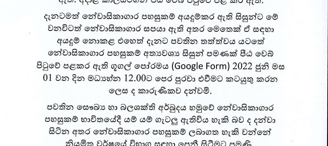 නේවාසිකාගාර සදහා අයදුම් නොකල හා නේවාසිකාගාර අයදුම් කර නොලැබුන සිසුන් සදහා