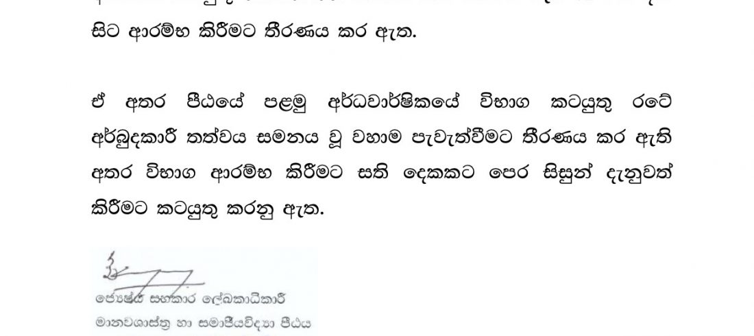 2022/2023 අධ්යයන වර්ෂයේ පළමු අර්ධවාර්ෂිකයේ විෂය ඒකක සඳහා ලියාපදිංචි වීම.