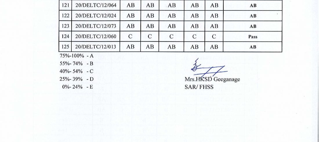 Department Of English Language Teaching Certificate in English (Weekend) -Intake 13 Results