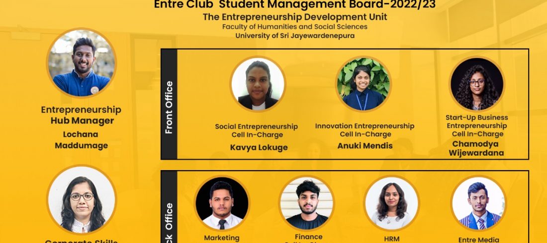 Student Management Board (2022/23) of Entre Club FHSS in University of Sri Jayewardenepura