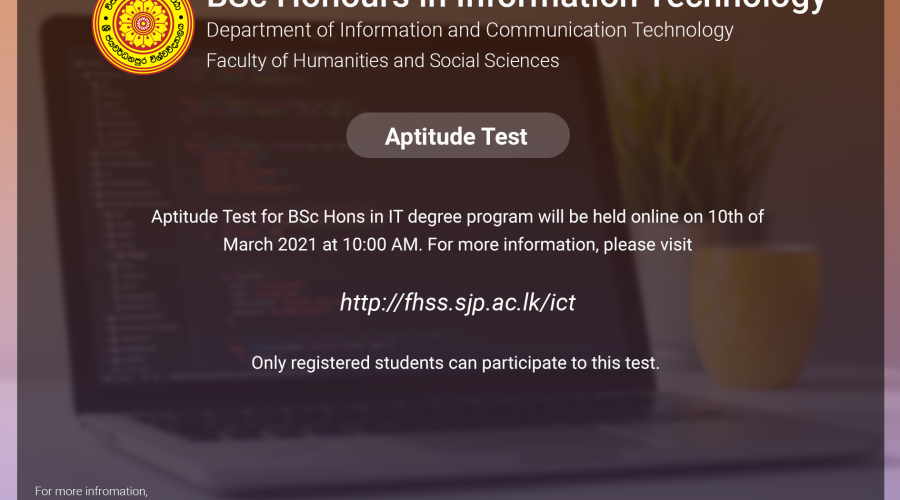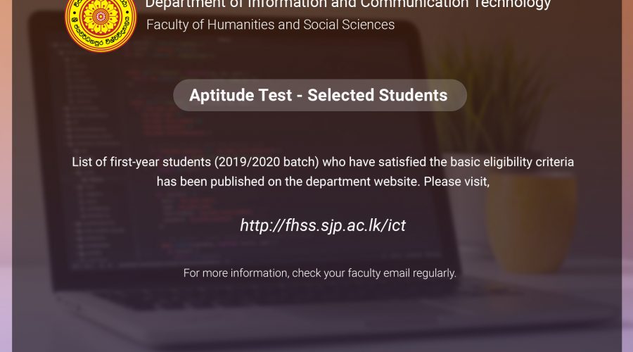 List of first-year students (2019/2020 batch) who have satisfied the basic eligibility criteria has been published on the department website. Please visit, http://archive.fhss.sjp.ac.lk/ict. For further information, check your faculty email regularly.Read More