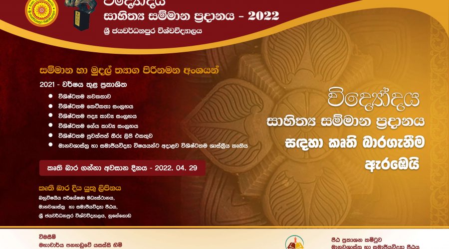 විද්යෝදය සාහිත්ය සම්මාන ප්රදානය සඳහා කෘති බාරගැනීම – 2022