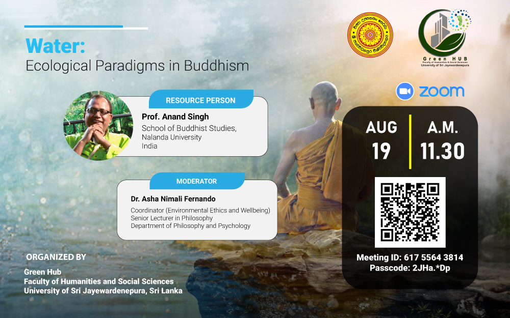 Prof. Ananda Singh from Nalanda University, India will present a talk under the title of Water: Ecological Paradigms in Buddhism dated 19th of August , 2021 at 11. 30 am.