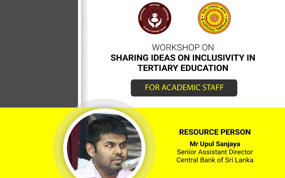 Workshop on Sharing Ideas on Inclusivity in Tertiary Education organized by the Academic Mentoring Committee of the Student Support Center, FHSS will be held on 26th June 2021.