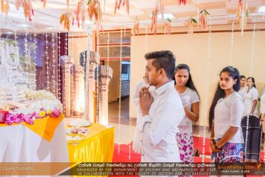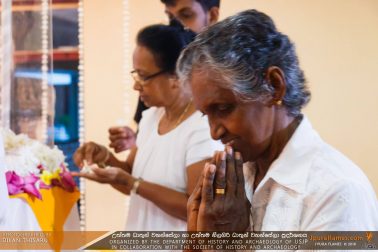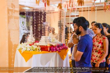 The religious rituals and the exhibition was organized by the Department of History and Archaeology of the Faculty of Humanities and Social Sciences as the coordinator of the Rajagala archeological project. Academic members and undergraduates of the department have been engaged in excavations and conversations of valuable religious and other artifacts in Rajagala science 2012.