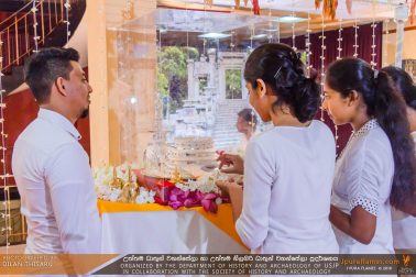 Before the deposition of sacred relics at Rajagala Ancient Temple in Ampara, undergraduates and public were given the opportunity to worship them on 11th October 2018. Senior Prof. Sampath Amaratunge who placed the sacred relics on the special stage first made his offerings. Also, Prof. D. P. S. Chandrakumara Dean of the Faculty of Humanities and Social Sciences, Dr. S. A. A. M Subasinghe, Dean of the Faculty of Engineering, Prof. K. M. Alexandar, Head of the Department of History and Archaeology and many other academic members participate in the ritual.