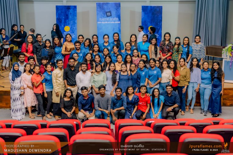 The Students’ Association of the Department of Social Statistics proudly presented the Magazine Launch and Musical Evening event on 05th October 2023 at the Sri Sumanagala Auditorium. During the event, Sankhayana Saraniya magazine, a collection of scholarly and creative works by the Department’s students was officially launched. Moreover, award-winning Sinhala Novelist Mr. Mohan Raj Madawela and award-winning Sinhala Lyricist and Professor of Anthropology of the Department of Anthropology, Prof. Praneeth Abeysundara delivered speeches on Art, Aesthetic Aspiration, and Education during the event. Prof. Shirantha Heenkenda, the Dean of the Faculty of Humanities and Social Sciences, Dr. (Ms.) Thanuja Silva, Head of the Department of Social Statistics, and academic staff members of the Department joined the gathering.